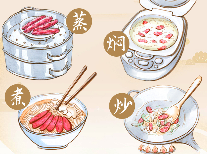 香腸做法多樣,烹飪簡單,是家家戶戶廚房中一年到頭不可缺少的食材。第一種:整根香腸隔水蒸或水煮15分鐘,品嘗原汁原味;第二種:搭配各類時蔬炒著吃,葷素搭配有營養(yǎng);第三種:搭配米飯、米線、面條,簡單美味又快手。