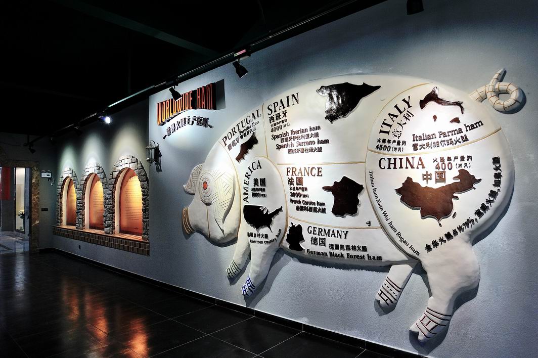 在世界火腿博覽館里,講述了火腿從絲綢之路一路傳播到世界各地,從中國一路出發(fā)到意大利、西班牙、法德英美等各國,隨著歷史變遷,在自然、人文、地理和氣候綜合因素下成就了世界各地各自不同的經(jīng)典火腿文化,并通過歐洲火腿商鋪、窖藏庫、原料豬生長等場(chǎng)景復(fù)原形式讓人真切感受了世界各國的火腿文化魅力。