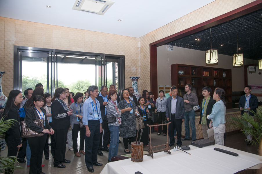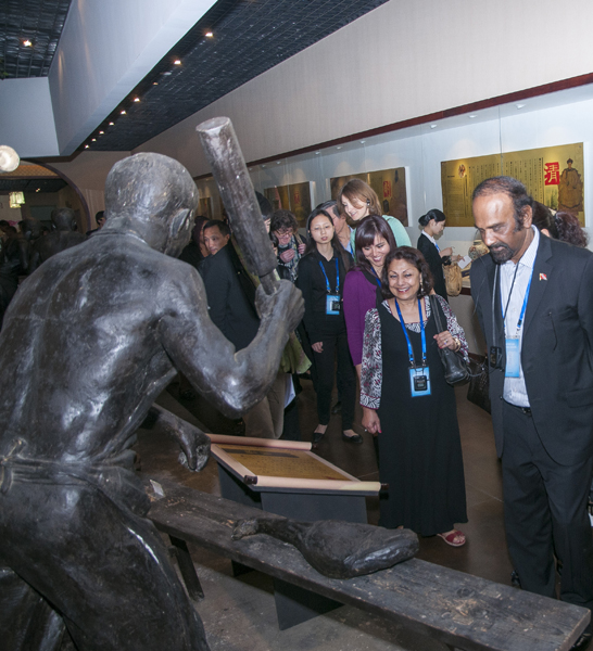 “Jinhua ham is so magical”,”This is delicious”“Good,Good”······5月9日上午,在 由金字興建的國(guó)內(nèi)唯一的中國(guó)火腿博覽館及世界火腿博覽館場(chǎng)館內(nèi)異常熱鬧,一聲聲包含著好奇、驚嘆、稱贊的英文不絕于耳。原來,是來自英國(guó)、湯加、毛里求斯等20國(guó)駐華使節(jié)50余人訪問團(tuán)在參觀考察。