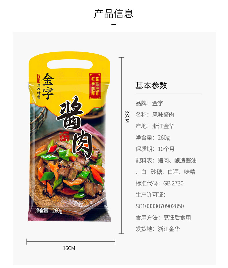 - 豬肉、釀造醬油、白砂糖、白酒、味精